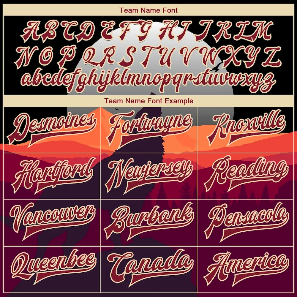 Custom Black Crimson-City Cream Wolf Howling 3D Pattern Design Bomber Full-Snap Varsity Letterman Jacket