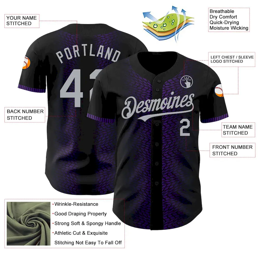 Custom Black Gray-Purple 3D Pattern Design Geometric Shapes Authentic Baseball Jersey