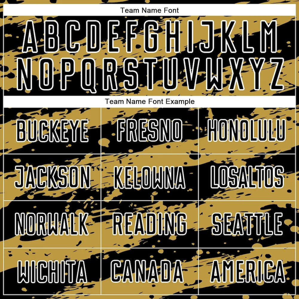 Custom Black Old Gold-White Splash Sublimation Soccer Uniform Jersey
