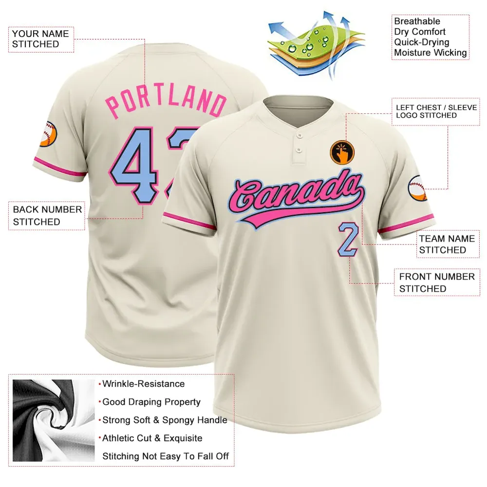 Custom Cream Light Blue Black-Pink Two-Button Unisex Softball Jersey