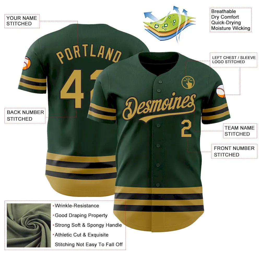 Custom Green Old Gold-Black Line Authentic Baseball Jersey