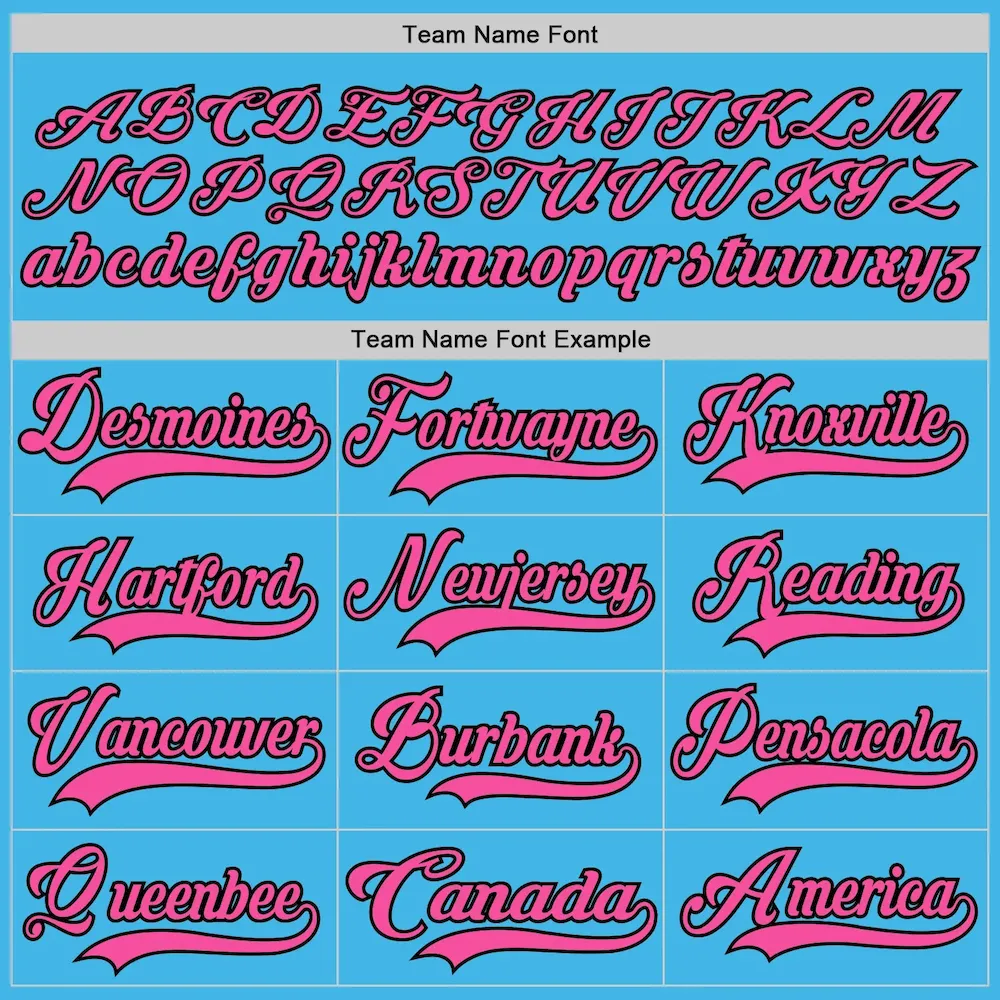 Custom Sky Blue Pink-Black Hockey Lace Neck Jersey
